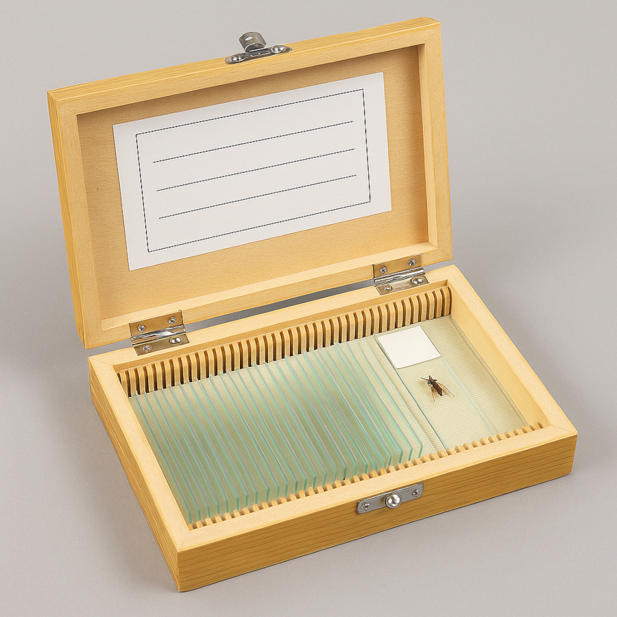 Pro velké sbírky preparátů existují krabice na preparáty nebo skříňky, které obsahují řadu „zásuvek“, ve kterých se preparáty ukládají v horizontální poloze.