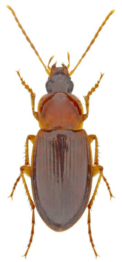 Size 6 - 8.2 mm. Protonum, base of elytra and epipleura are red, elytra themselves are black to black-brown. Alternatively, protonum can be brown-red, as well as antennae (except 1st segment) and pulps.
