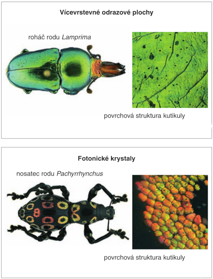 Colouration in beetles refers to the colours and patterns on the body surface (skin / elytra), which can be produced by two basic mechanisms: