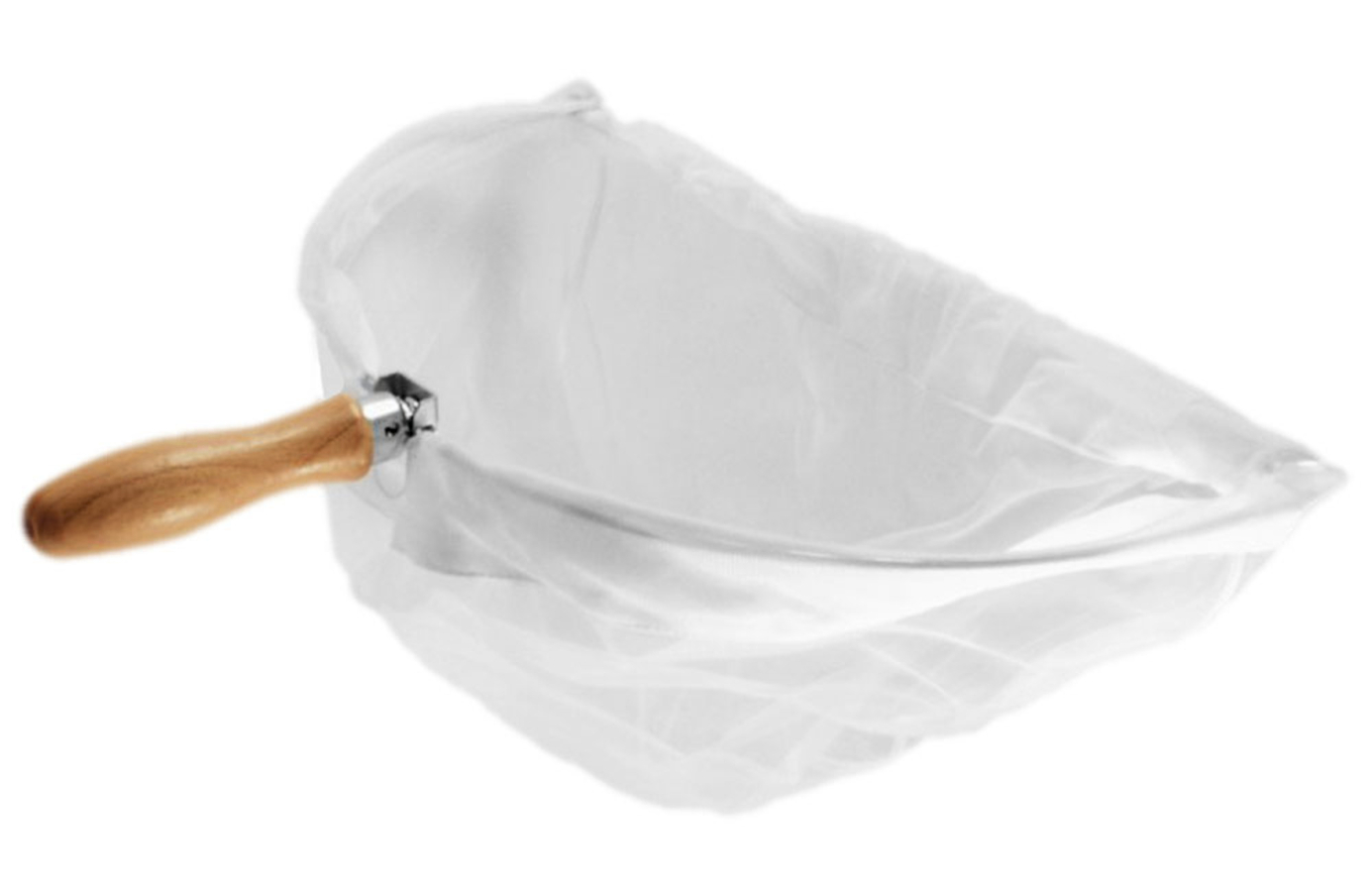 - net, looking like a sweep with a large diameter frame and a very shallow canvas bag; the handle of the bucket points towards the centre of the frame