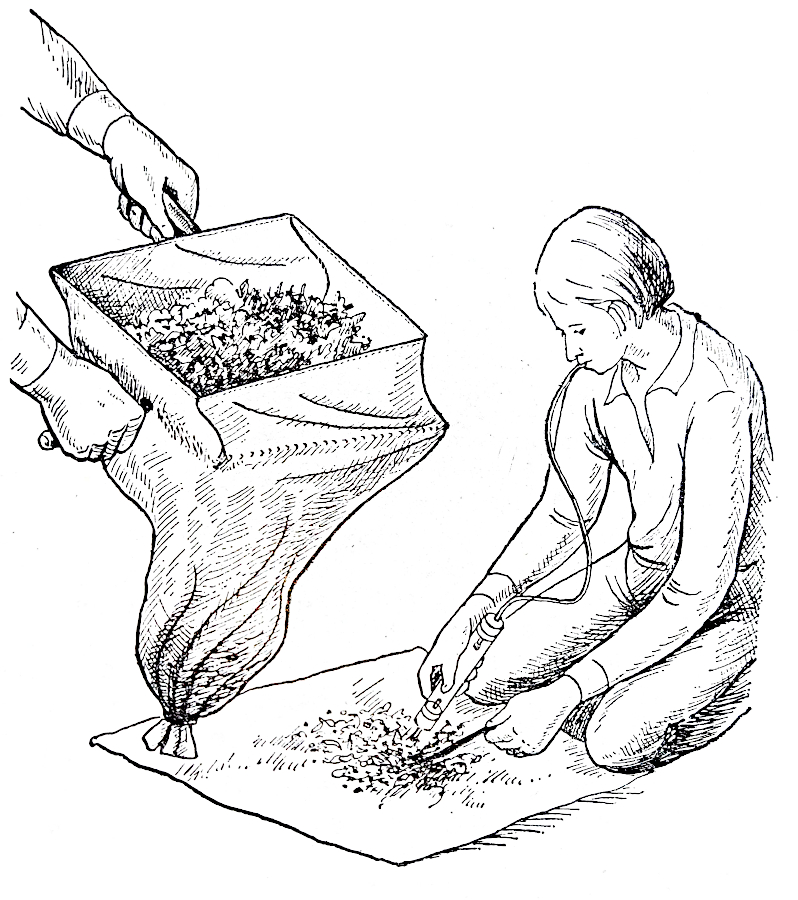 Manual seeding is done by pouring a small sample of the seeding into a white dish or onto a white screen and allowing the heat of the room to work. After some time, movement in the seepage is noted. Select individual species with tweezers or an extractor. When using the exhaustor, be careful not to inhale the dust that is in the millet. Even with the most precise work, we are not able to extract all the insects trapped in the moss using this method. For better selection we must use one of the many types of eclectors or, better still, a combination of them. On the other hand, hand picking is the least costly of all the techniques for processing sieves.