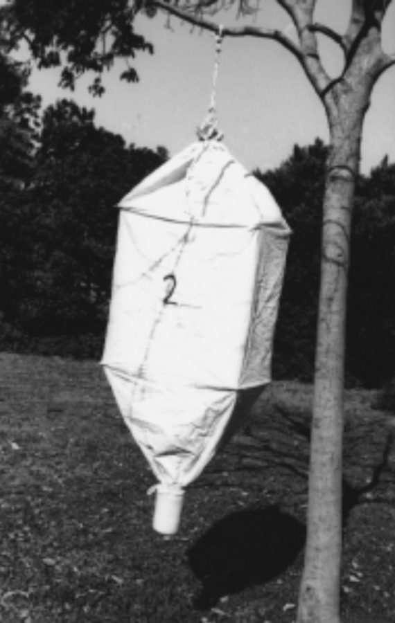 To catch the bark beetle, press the net lightly against the tree trunk (the rubber cord hugs the trunk) and use a brush or broom to sweep the insects from the bark into the net. Follow the same procedure to check the detached bark of a dead tree. You then remove the insects from the netting with tweezers or an exhaustor, or process the bark netting material with an extractor.