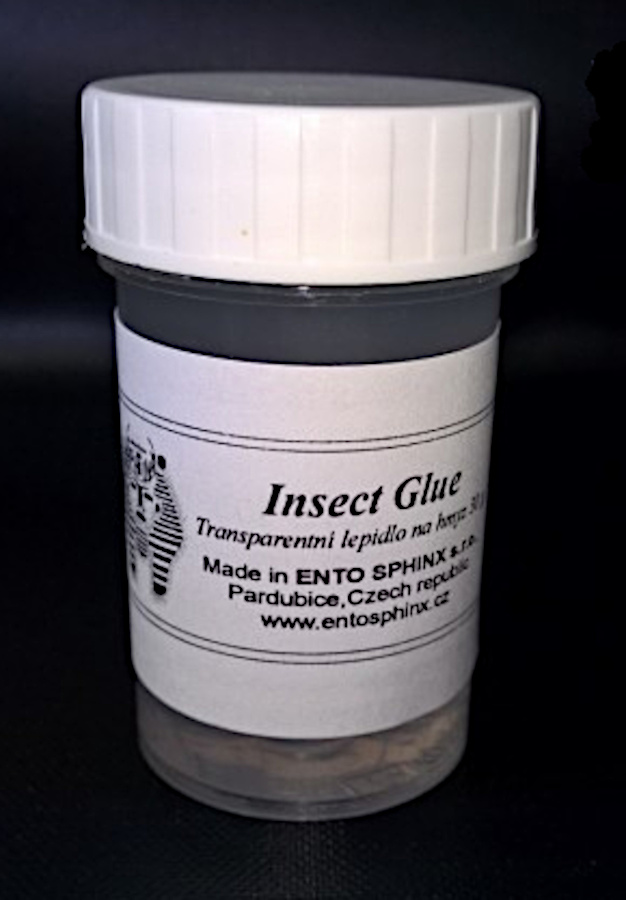 The above requirements are met without fail by Herkules glue, which has been the most used glue by Czech entomologists for many years. Other types of glues are practically not used by Czech amateur entomologists. In entomological supplies you can buy glue based on glue (approx. 200.- CZK/35 g) or glue based on polyvinyl alcohol (approx. 120.- CZK/30 g).