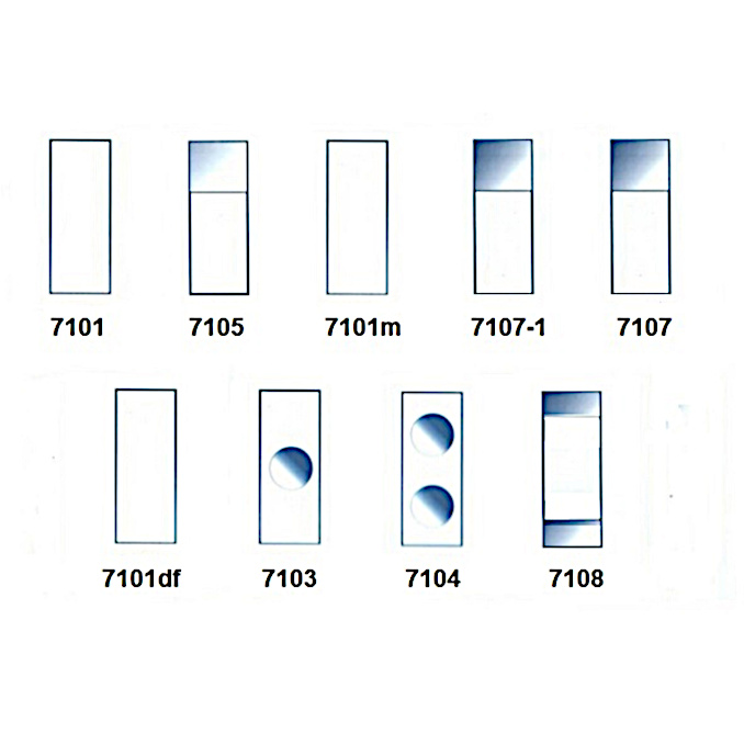 Personally, I use the basic type 7101 slides and cover glasses of 15x15 mm, 18x18 mm or 22x22 mm.